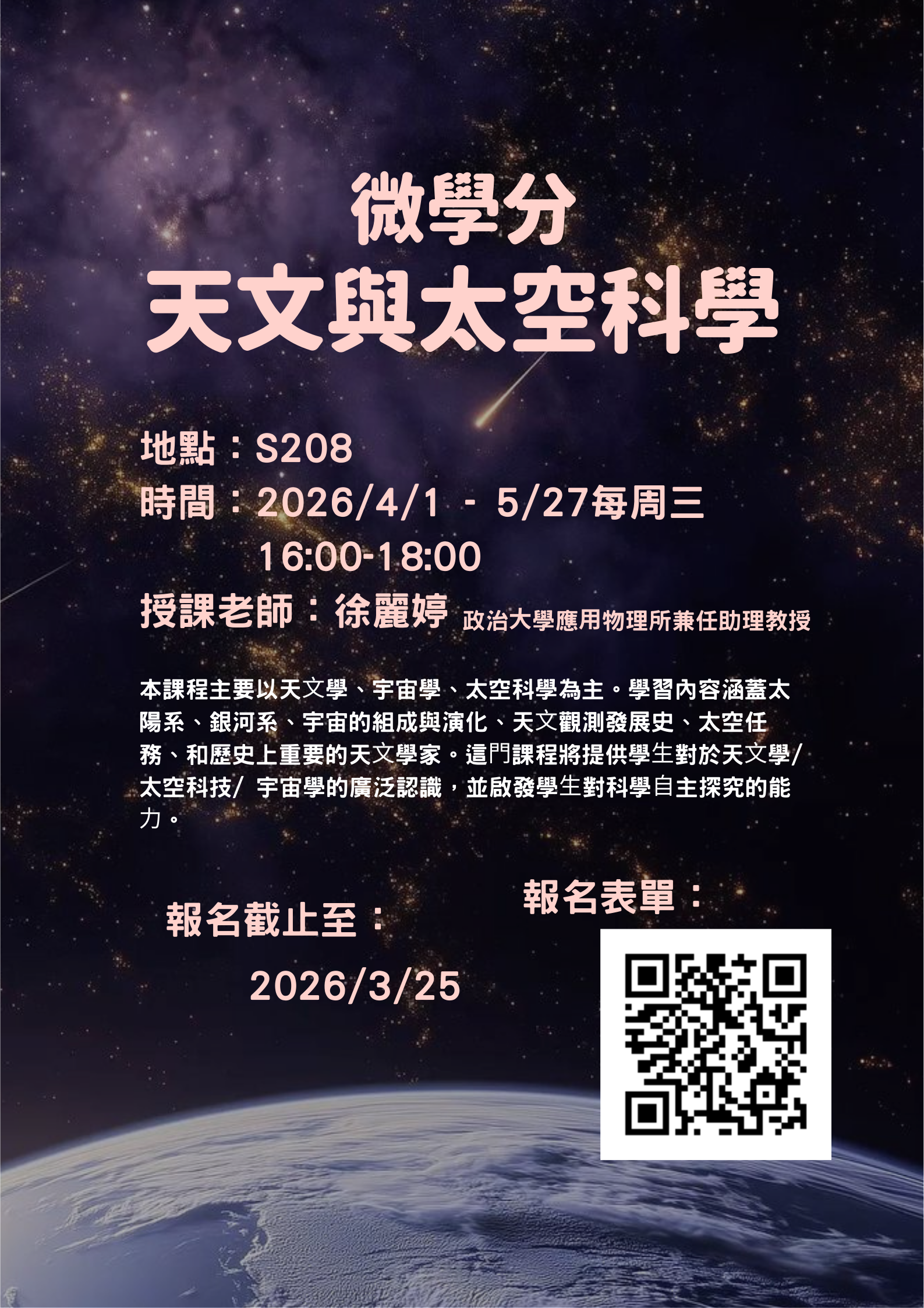 【公告】天文微學分報名連結更改請重新報名!!!